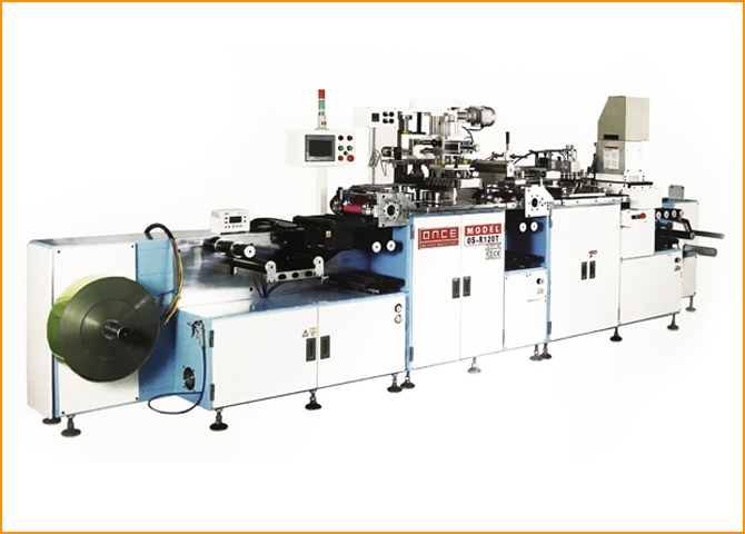 产品名称:OS-R120T 全自动高速三色丝印+烫金印刷机