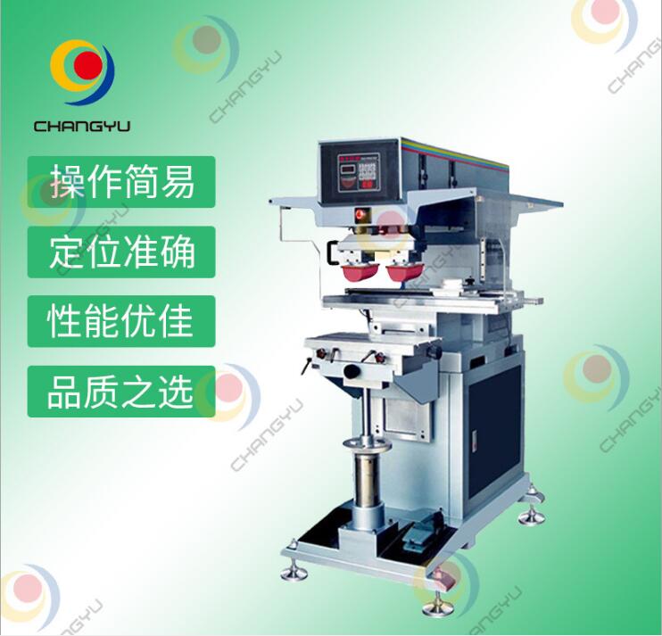 是为了印刷比较大面积而精心设计的一种油盅式移印机,是一种通用型印刷机,能广泛应用于日常用品、玩具、电子、电器、塑料、皮革、金属、玻璃、轻工业及食品包装等各种行业中。