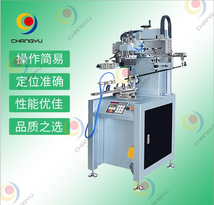 座地曲面圆印齿条工作台!采用气动元件驱动,PLC(可编程序控制器)智能型全伺服马达驱动丝印机、运行平稳,调节方便,有安全保护装置,印刷速度及行程可完全数字化控制,操作简便等特点。